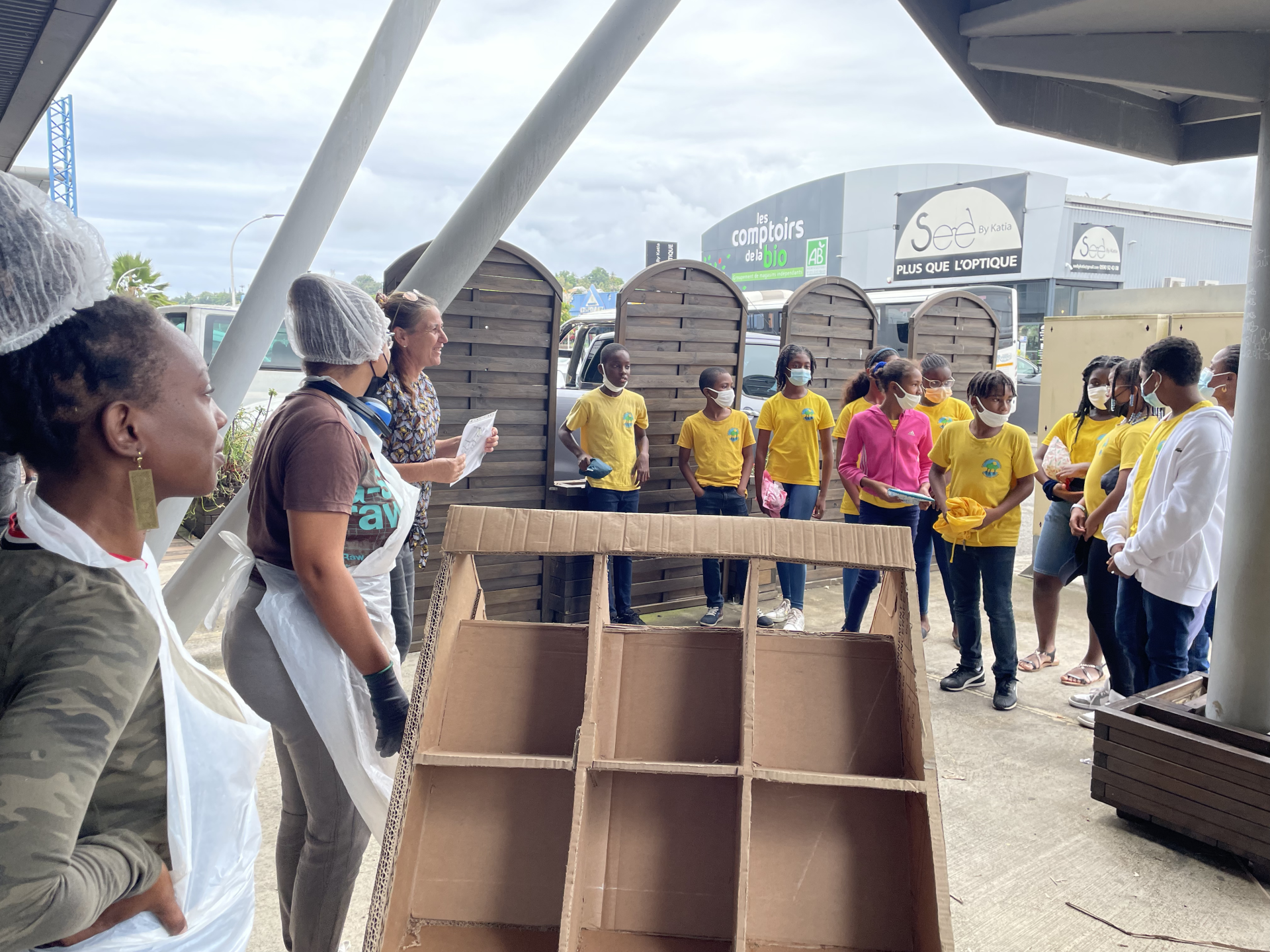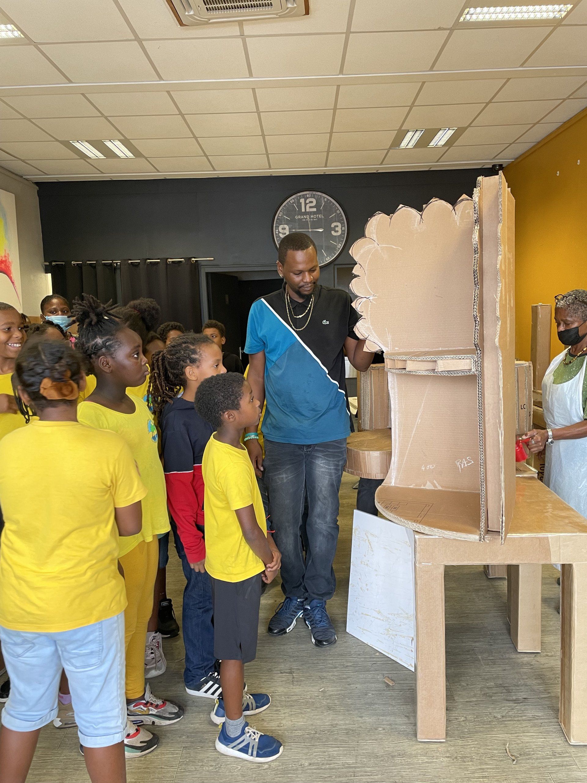 Une action qui a été menée sur plusieurs étapes avec différentes écoles de la ville de Petit-Bourg. Lors de la première étape du parcours, les apprenants de la formation éco-valoriste ont été présenté aux élèves le projet de créations de meubles et jouets en carton.