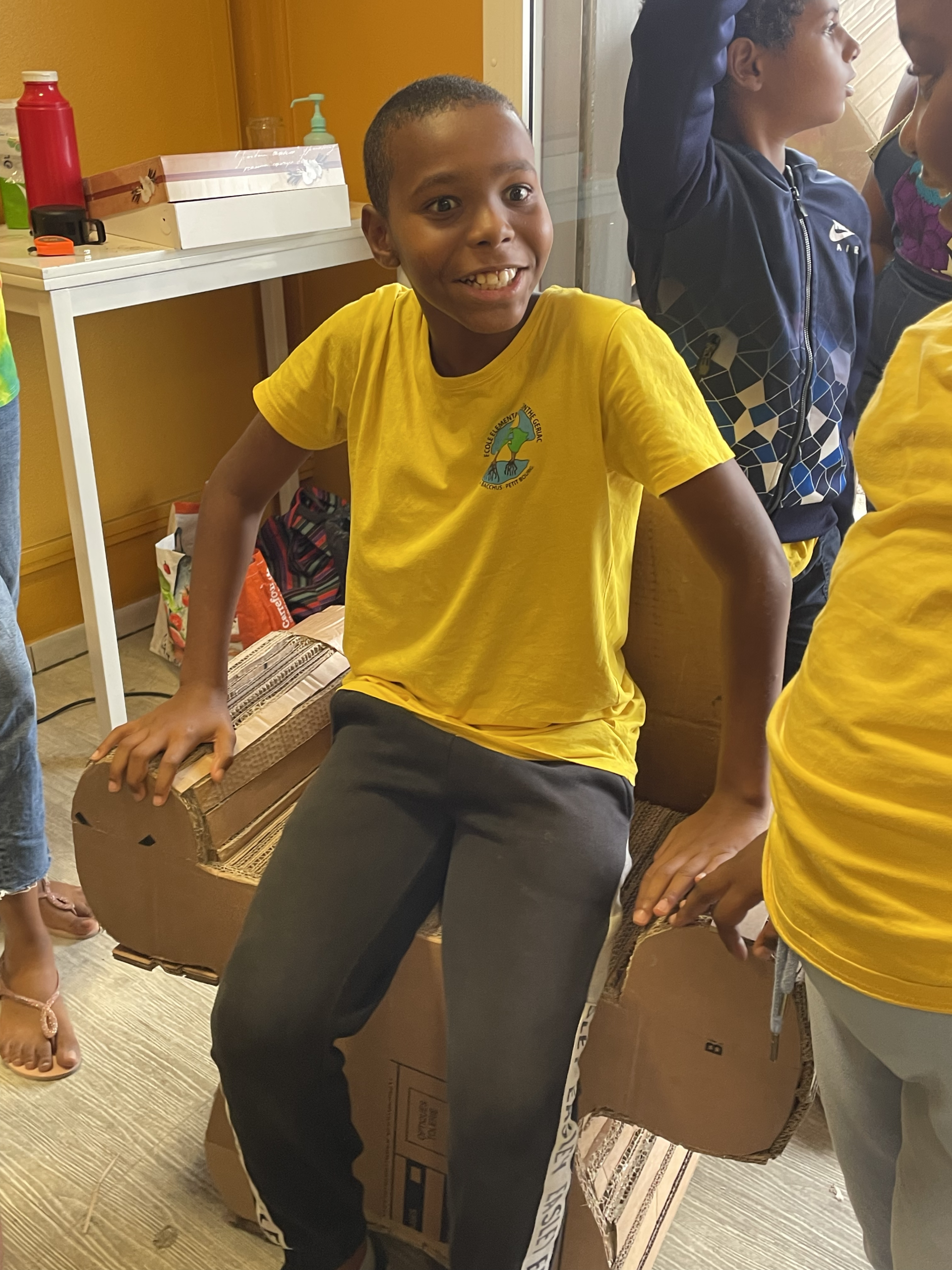 Comme en témoigne la vidéo ci-dessous, les enfants ont pu laisser parler leur créativité en décorant les jouets et meubles en carton conçus par nos apprenants 🎨